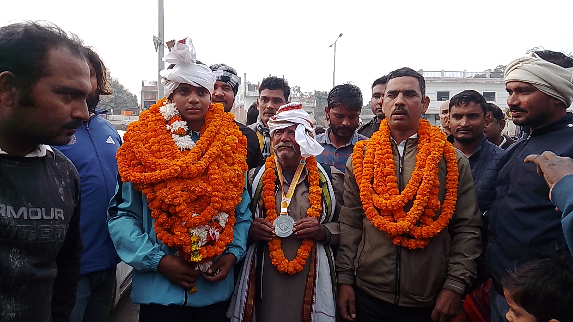नरायनपुर, मिर्जापुर। पुरैनी ग्राम सभा के 14 वर्षीय देवांश पाल ने सहारनपुर में 69 वीं राष्ट्रीय माध्यमिक विद्यालय खेल प्रतियोगिता द्वारा आयोजित नेशनल कुराश कुश्ती में चांदी पर बाजी मारी।17 दिसंबर को 54 किलो ग्राम भार वर्ग के अंतिम राउंड में भी देवांश पाल ने अपने प्रतिद्वंदियों को पटखनी देकर सिल्वर मेडल पर अपना नाम दर्ज करा लिया। देवांश पाल के सिल्वर मेडल की जीत की खबर लगते ही पुरैनी गांव एवं आसपास के क्षेत्रों में खुशी की लहर आग की तरह फैल गई। उनके घर बधाई देने वालों का ताता लग गया।