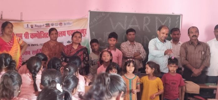 नरायनपुर, मिर्जापुर। पी एम श्री कंपोजिट विद्यालय परशुरामपुर, नरायनपुर में सत्र 2026 – 27 के लिए शिक्षा ग्रहण करने के लिए प्रवेश लेने वाले विद्यार्थियों हेतु स्वागत कार्यक्रम का आयोजन किया गया। विद्यालय के प्रभारी प्रधानाचार्य सुभाष प्रसाद सिंह ने विद्यालय में नव प्रवेशी विद्यार्थियों का स्वागत उन्हें तिलक लगाकर, उनपर पुष्प की वर्षा किया तथा आरती कर स्वागत किया।